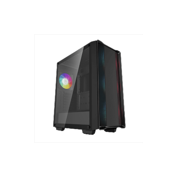 Similar to CH560 WH but in black; tempered glass side panel; mesh front panel; professional cable management |